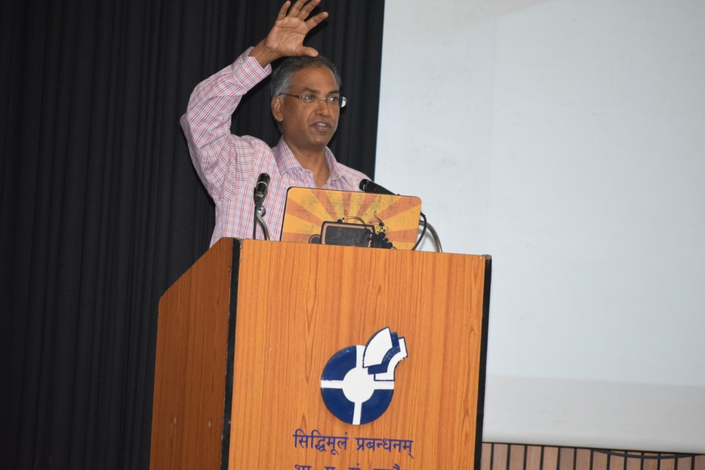 Mr. Mukesh Jain, VP and Head, Big Data Analytics, Reliance Jio, delivered a lecture on “Trapping the customer with data”, and enlightened the listeners on the importance of big data analytics to derive value out of huge customer data collected every second. He talked about SoLoMo,.i.e Social, Local and Mobile, which according to him, is the future. “Do what you enjoy the most”, is what he began his address with.