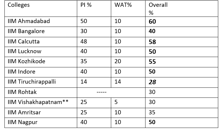With the most of management entrance exams out of the way, the next step in the selection process of MBA colleges comes Personal Interview (PI), Written Ability Test (WAT), and Group Discussion (GD). To see the importance of the next phase, let’s have a look at the weight given by some premier institutions to different activities in this process.