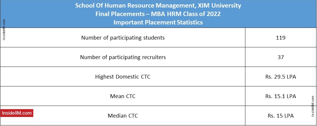 School Of Human Resource Management, XIM University Final Placements – MBA HRM Class of 2022 | Key Highlights