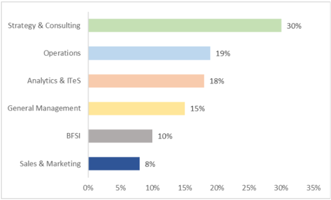 - 30% of the batch was placed in strategy and consulting, 19% in operations, 18% in Analytics and IT, 15% in General Management, 10% in BFSI, and 8% in Sales & Marketing.